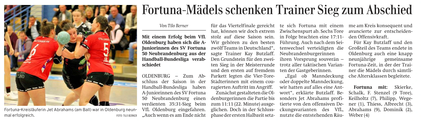 Nordkurier 03.03.2026: Fortuna-Mädels schenken Trainer Sieg zum Abschied