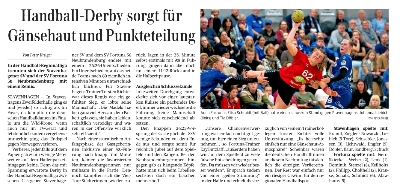 Nordkurier 16.12.2025: Handball-Derby sorgt für Gänsehaut und Punkteteilung