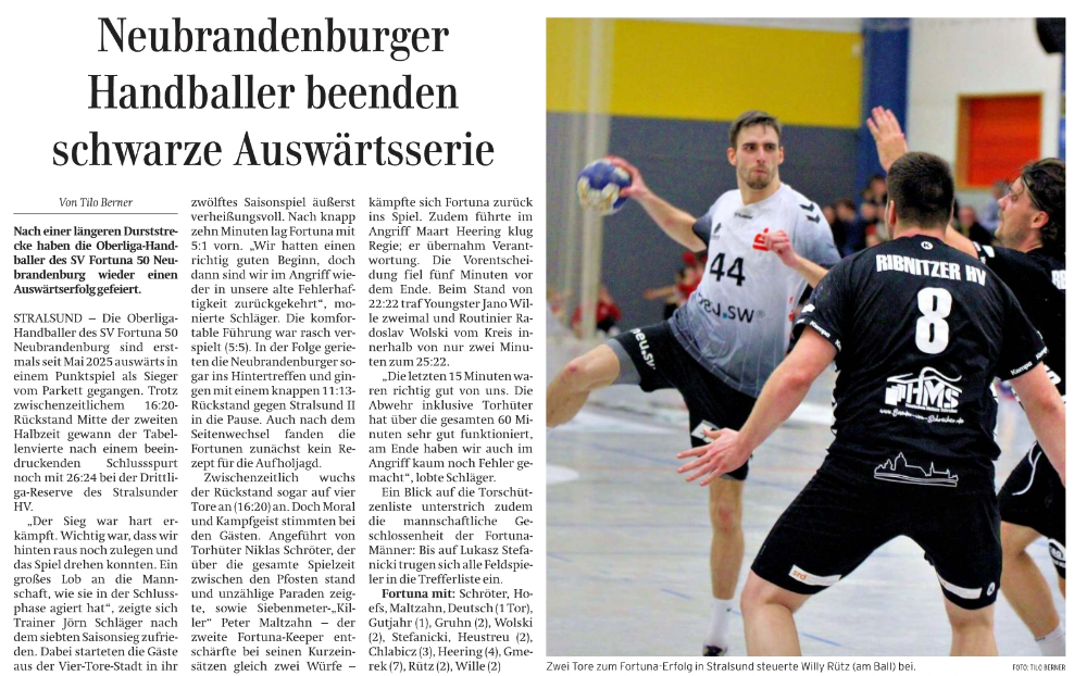 Nordkurier 02.02.2026: Neubrandenburger Handballer beenden schwarze Auswärtsserie