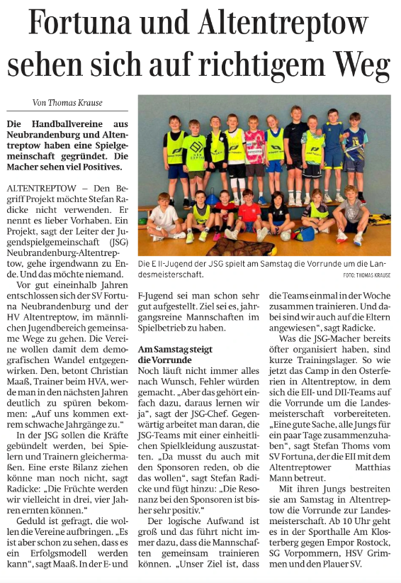 Nordkurier 10.04.2026: Fortuna und Altentreptow sehen sich auf richtigem Weg