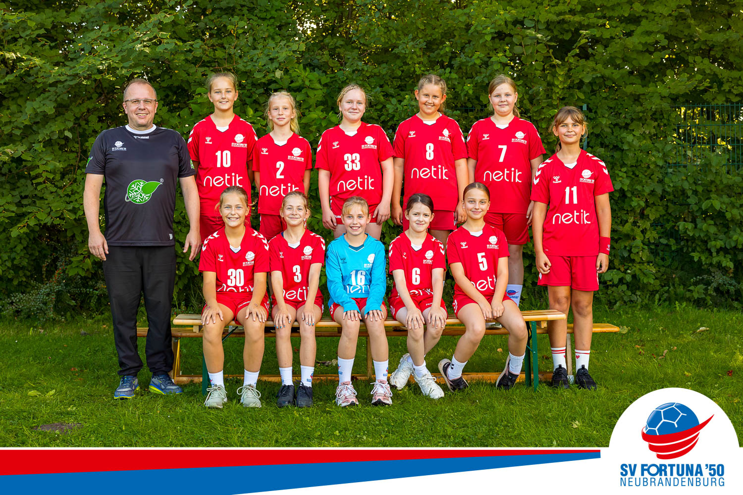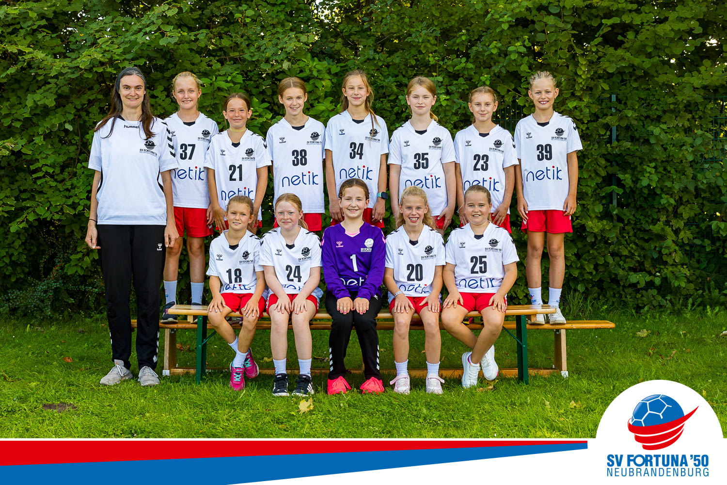 Hintere Reihe v.l.n.r.: Marie Luttkus (Trainerin), Charlotta Raabe, Theresa Jerke, Martha Luttkus, Jolina Talmann, Vanessa Baade, Charlotte Stiel, Amelie Stamm